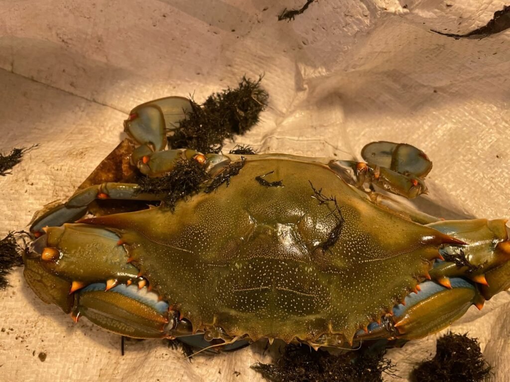 Ce crabe est une espèce très invasive en Méditerranée. Originaire d’Amérique, il est arrivé en Mer Méditerranée sous forme de larve dans les bateaux… Sa carapace peut dépasser 20cm (40cm pinces comprises). Son impact est important pour l’écosystème et les pêcheurs… L’accouplement a lieu dans les eaux saumâtres, dans les herbiers. Donc Port Grimaud pourrait être un site tout à fait adapté… Karine, du restaurant Le Plaisancier, en a d’ailleurs piégé un dans une nasse, le 17 mars 2025.