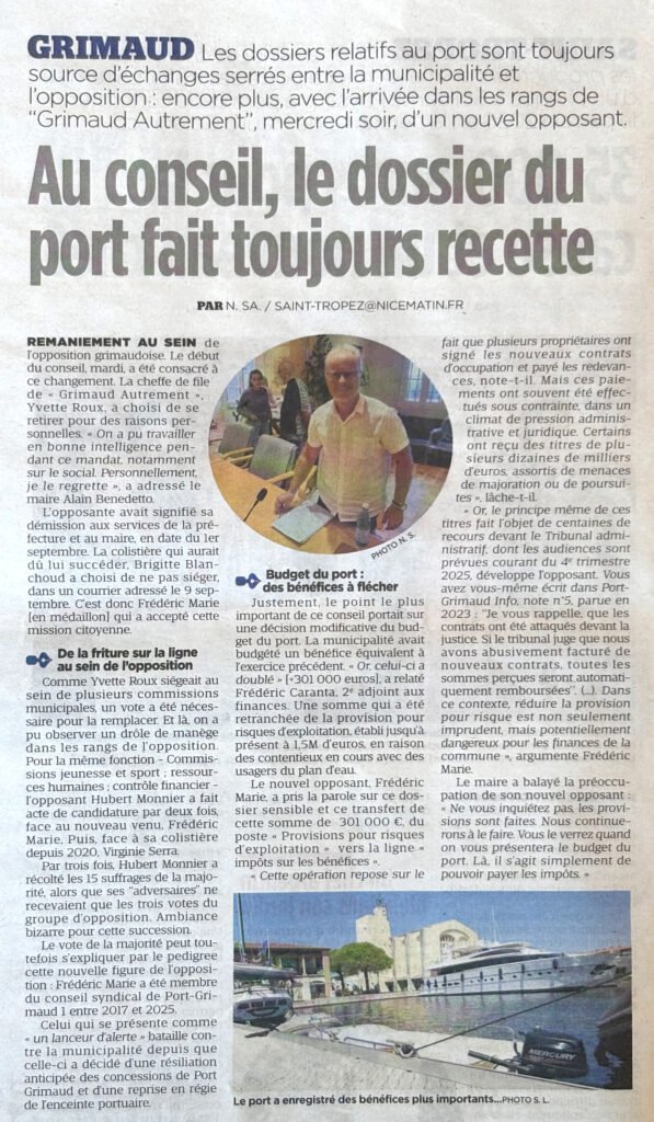 Les dossiers relatifs au port sont toujours source d'échanges serrés entre la municipalité et l'opposition: encore plus, avec l'arrivée dans les rangs de "Grimaud Autrement", mercredi soir, d'un nouvel opposant.