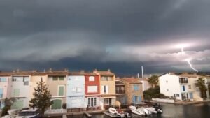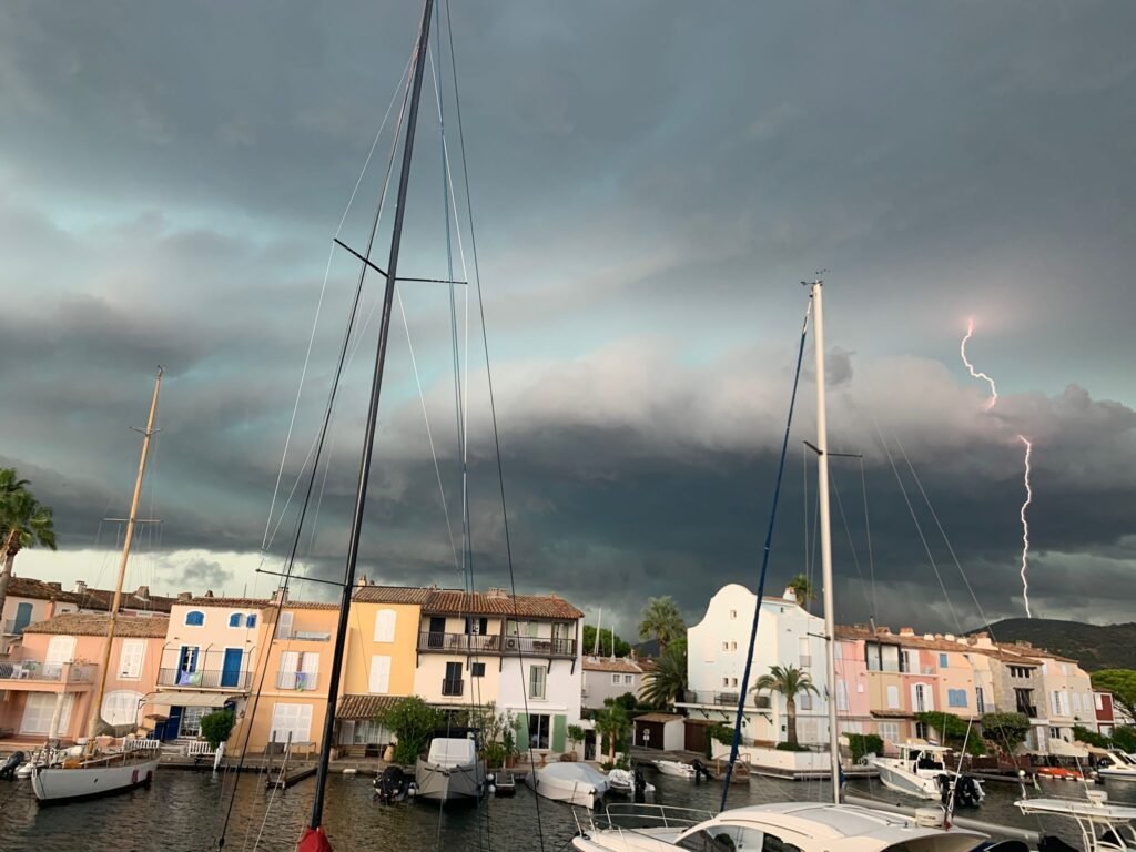 Le lundi 1er septembre au soir, Port Grimaud a été le théâtre d’un orage d’une rare intensité. Un vent d’une force exceptionnelle a soufflé, couchant les arbres et faisant siffler les drisses. La pluie, tombée en trombes sur moins d’une heure, a provoqué des inondations, transformant certaines rues en torrents. Le niveau de l’eau est rapidement monté dans les canaux, recouvrant certains pontons, avant de redescendre une fois l’orage passé. Le fort courant a rendu la navigation difficile et chahuté les bateaux aggripés à leurs haussières.