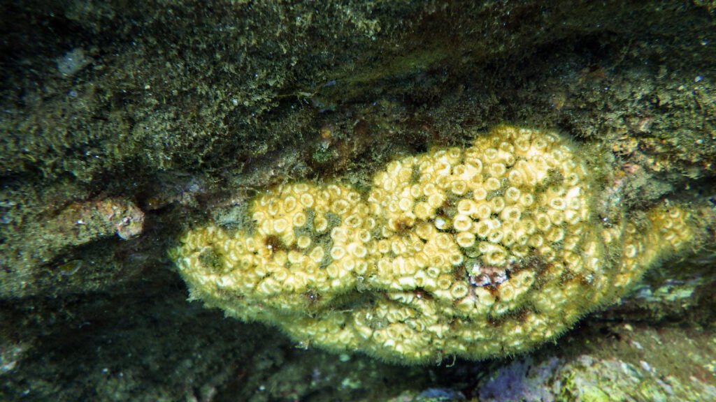 • Cladocores (Cladocora spp.) : désormais protégés ; petits coraux constructeurs sensibles à la turbidité et aux travaux. Colonies présentes le long de la digue nord de port Grimaud (cf article à venir sur les cladocores à Port Grimaud)
