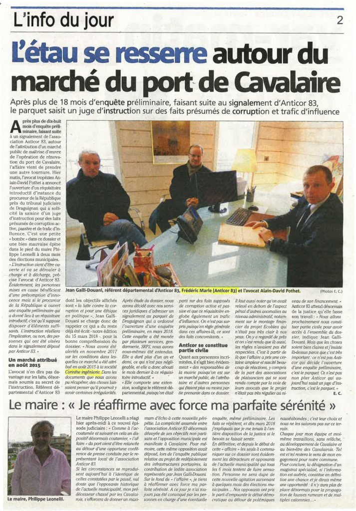 Après plus de 18 mois d'enquête préliminaire, faisant suite au signalement d'Anticor 83 le parquet saisit un juge d'instruction sur des faits présumés de corruption et trafic d'influence