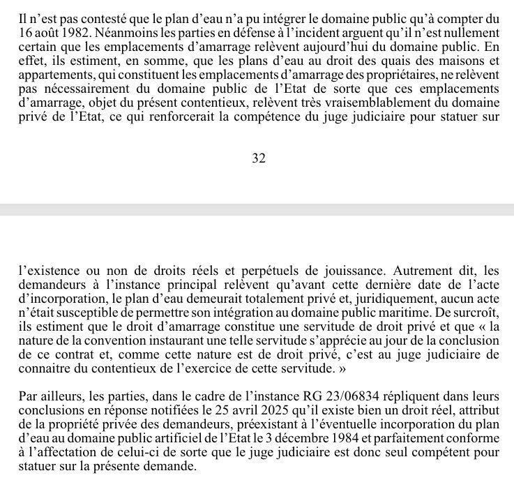 Cet extrait du jugement du Tribunal Judiciaire du 24 juillet 2025 est un signal fort pour la reconnaissance de nos droits privés sur le plan d’eau qui est devenu un Domaine Public Maritime (DPM).