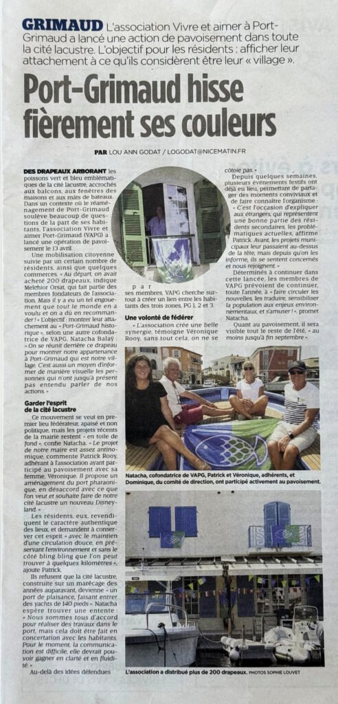 GRIMAUD L'association Vivre et aimer à Port-Grimaud a lancé une action de pavoisement dans toute la cité lacustre. L'objectif pour les résidents: afficher leur attachement à ce qu'ils considèrent être leur « village ».