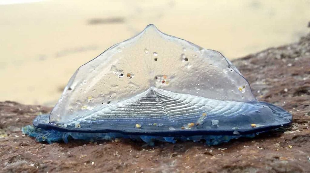 Vous l’aurez peut-être remarqué si vous êtes à Port Grimaud actuellement, en vous promenant le long des plages et des jetées… une multitude de petites taches bleues devenant au fil des jours complètement transparentes…, il s’agit des vélelles. Mais qu’est ce donc ? Quand elles flottent elles ressemblent à de jolis petits bateaux à voile bleue. Velella velella est une « cousine » de la méduse mais elle est inoffensive, elle ne pique pas. La méduse est une cnidaire pourvues de cnidoblastes, ses cellules urticantes, dont la velelle, qui est une hydraire, est dépourvue.